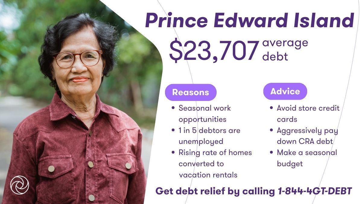 Credit card debt—especially store cards—is common in PEI. On top of that, the average debtor that files with Grant Thornton owes more than their monthly income to the CRA, roughly $6,000, often due to self-employment or contract work. If this sounds familiar, consider budgeting for seasonal income fluctuations and steering clear of high-interest store cards. These small steps can make a big difference, and we can help. Learn more about debt relief in Prince Edward Island or book a free consultation with us.