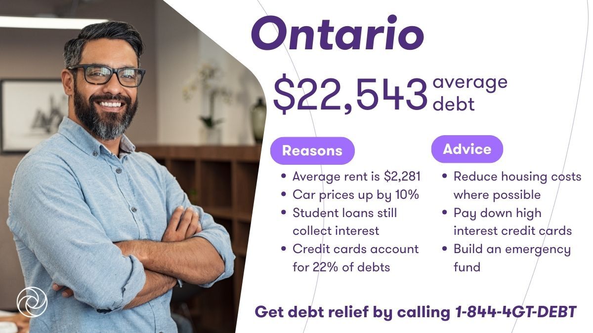 Reliance on loans. Many Ontarians rely on loans to offset the cost of living. Of those who filed with Grant Thornton, student loans top the list, partially due to Ontario being one of the few provinces that still charges interest on provincial student loans. Credit cards account for 22% of reported debts, and one in ten Ontarians have turned to payday loans to make ends meet.